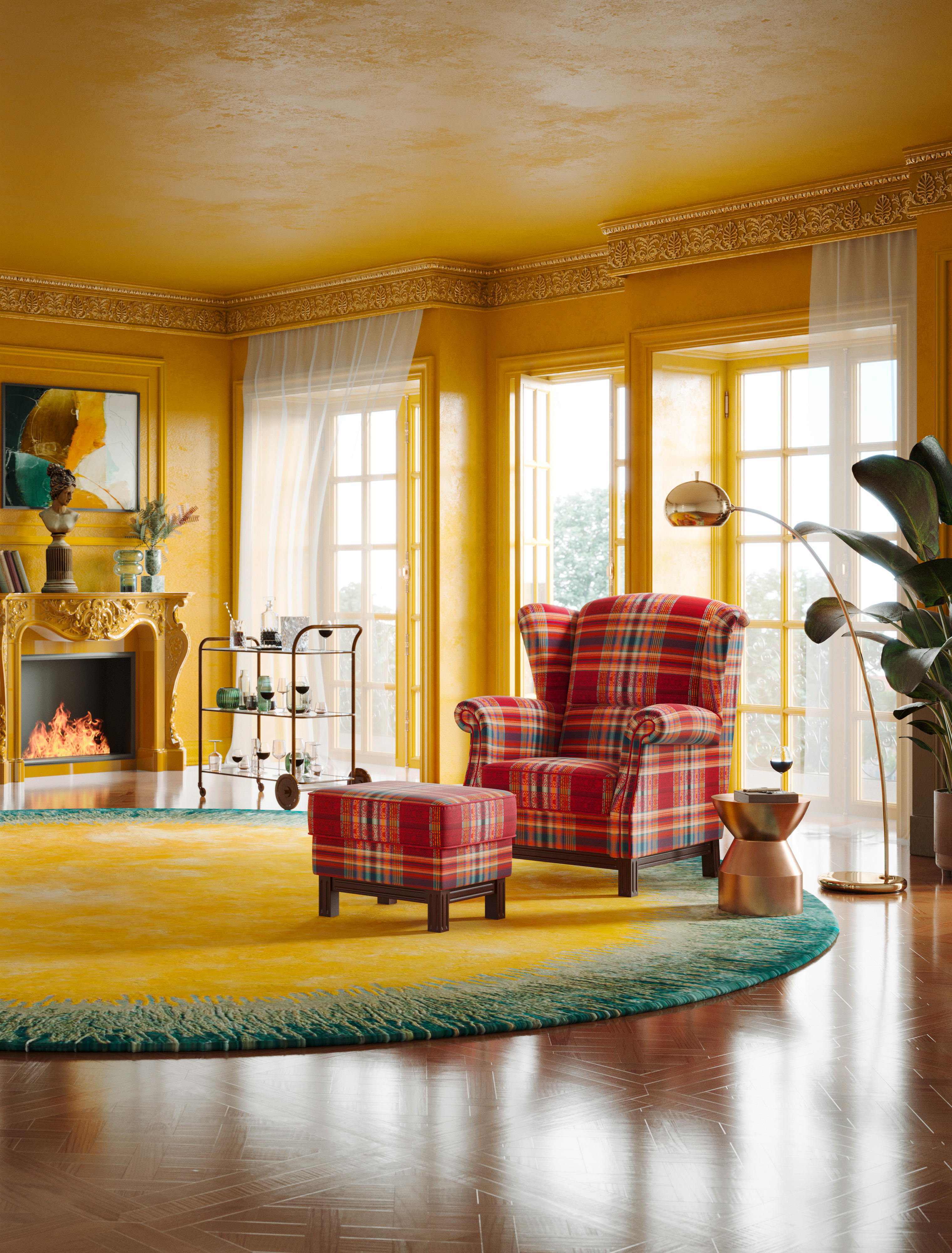 Cambridge Solitärsessel mit Hocker