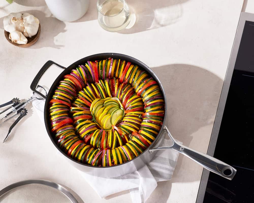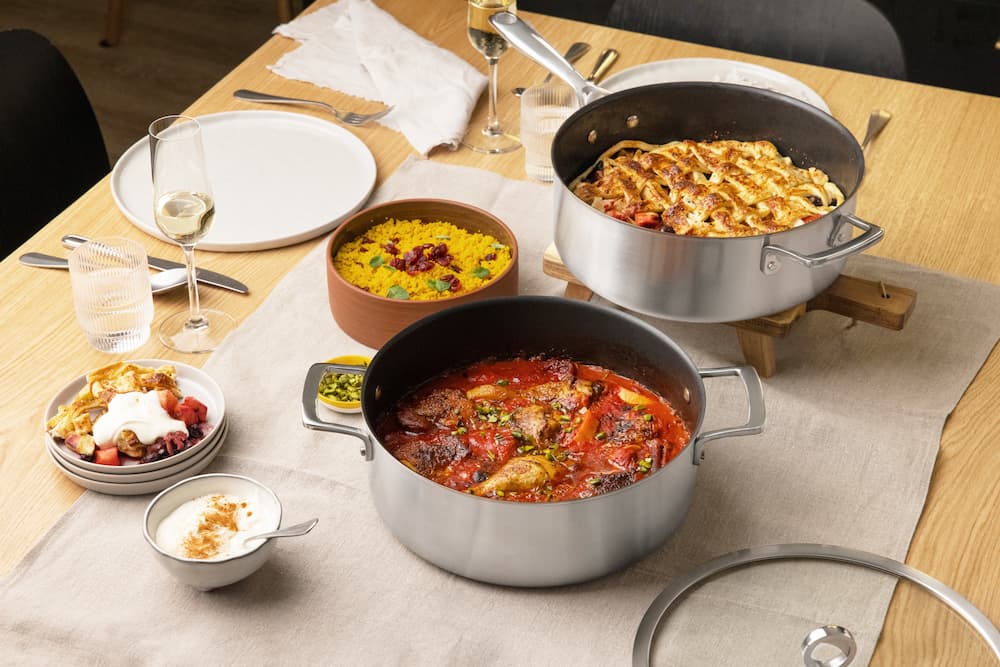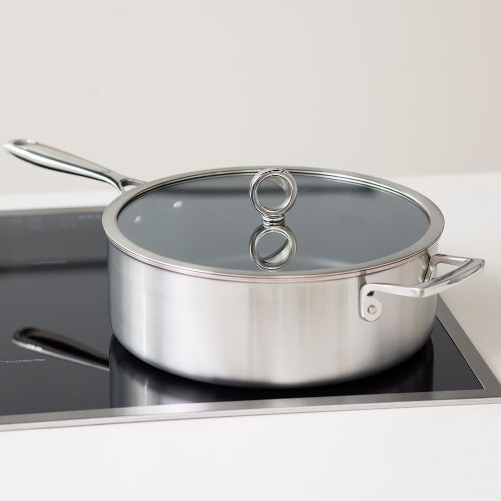 Die Schmorpfanne ist ideal für größere Lebensmittelmengen und schenkt dir über das Schmoren hinaus noch einen unerlässlichen Essential im Alltag, der vielseitig eingesetzt werden kann: dünsten, anbraten und garen sind in der Schmorpfanne ein Kinderspiel. In der unbeschichteten Schmorpfanne kannst du Fleisch und Gemüse mit besonders hoher Hitze anrösten, um die Aromen deiner Schmorgerichte zu intensivieren.